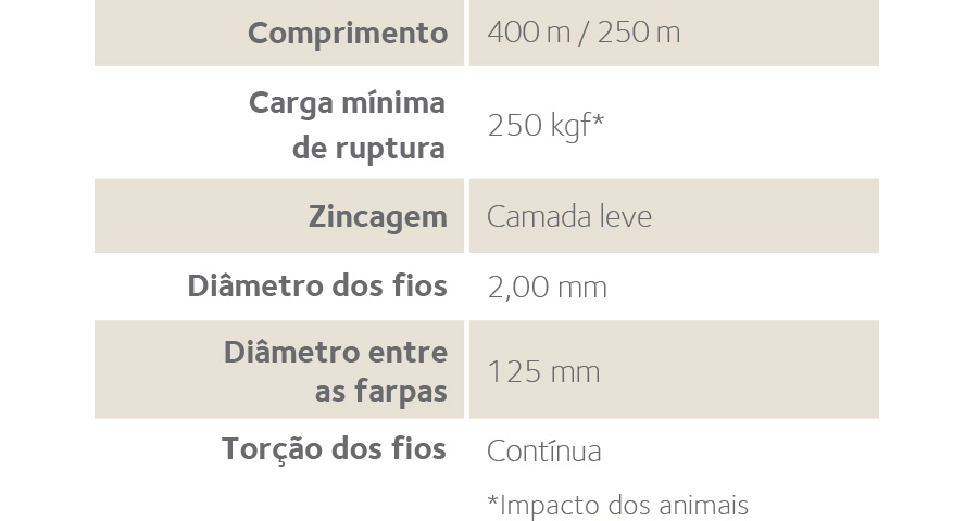 Arame macio e fácil manuseio. Farpas entrelaçadas.