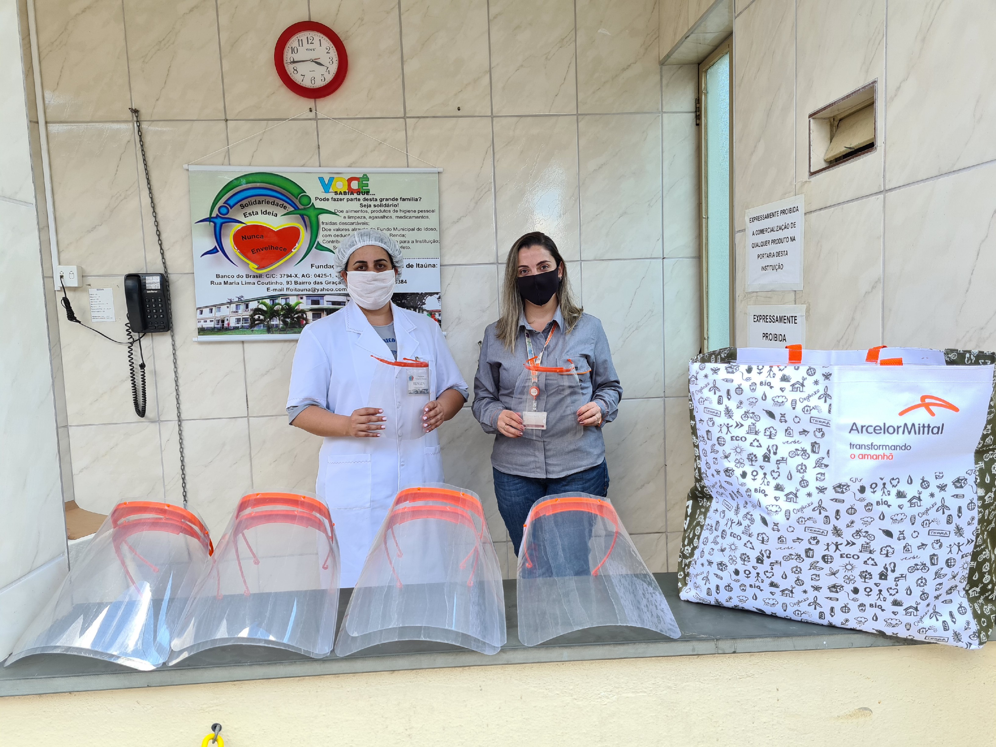 A ArcelorMittal Mineração Serra Azul realizou a doação de 490 protetores faciais - máscaras face shield - para instituições sociais e hospitais de Itatiaiuçu, Itaúna e Mateus Leme. As viseiras, produzidas com acetato, são acopladas a um arco plástico e são eficientes na proteção de nariz, boca e olhos, funcionando como barreira para evitar o contato com gotículas que possam transmitir o Coronavírus.